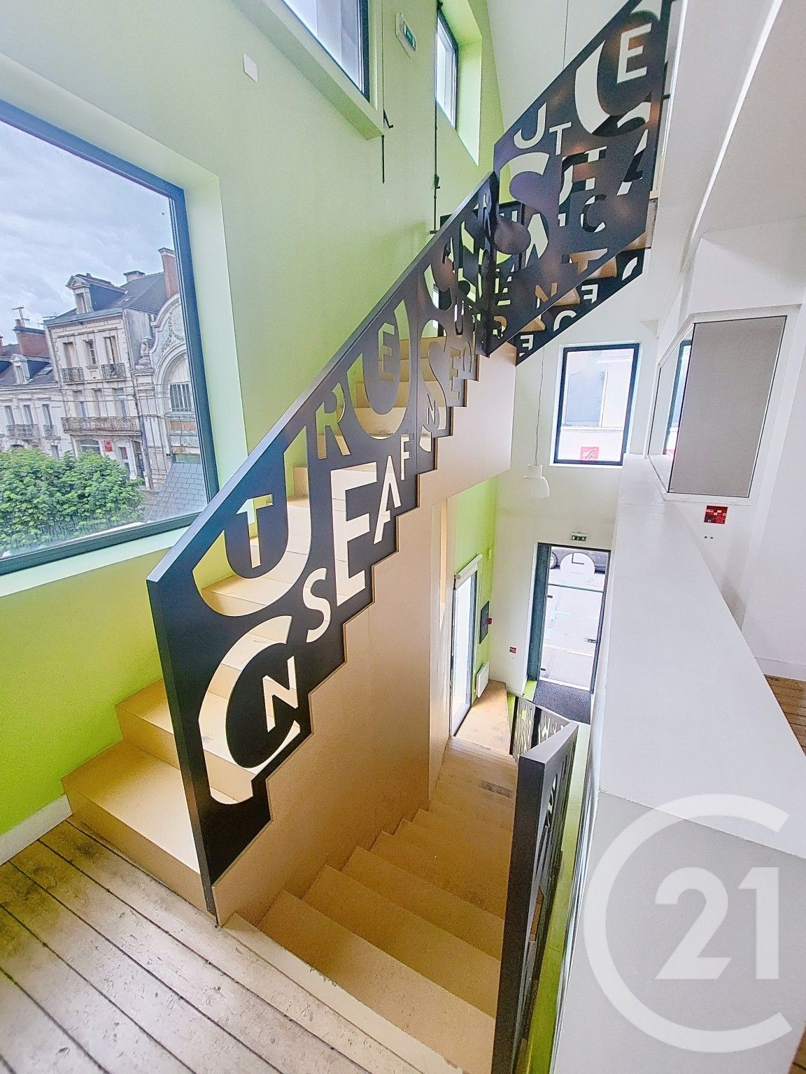 Palier desservant plusieurs bureaux lumineux